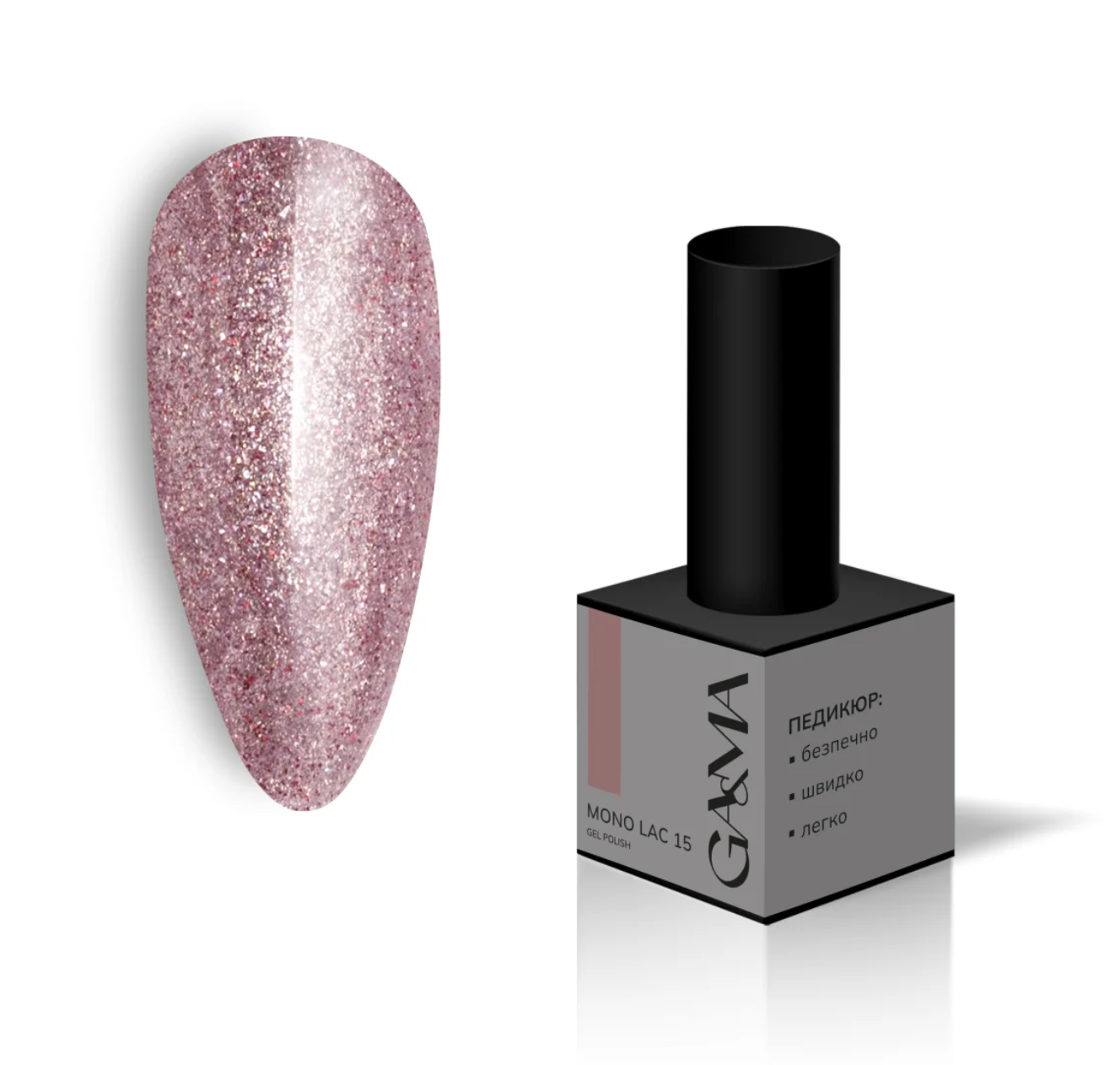 Гель-лак однофазний GaMa Mono Lac №015, капучіно з блискітками, 6 мл
