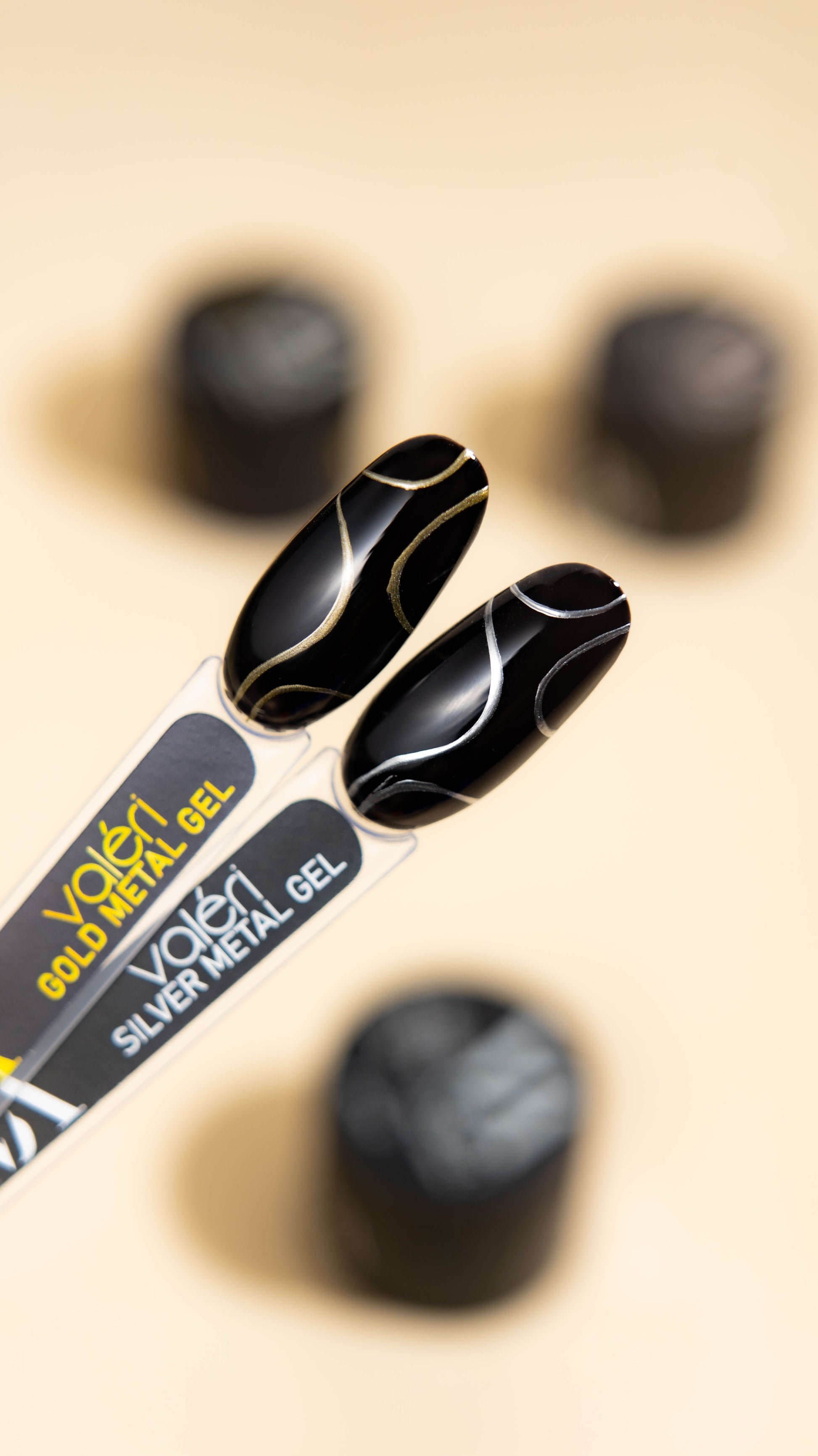 Valeri Metal Gel Collection - це насичена кольорова гель-фарба, яка має рідку консистенцію. Гель фарба має ефект металу, що допомагає створювати унікальні візерунки та тонкі лінії на нігтях.